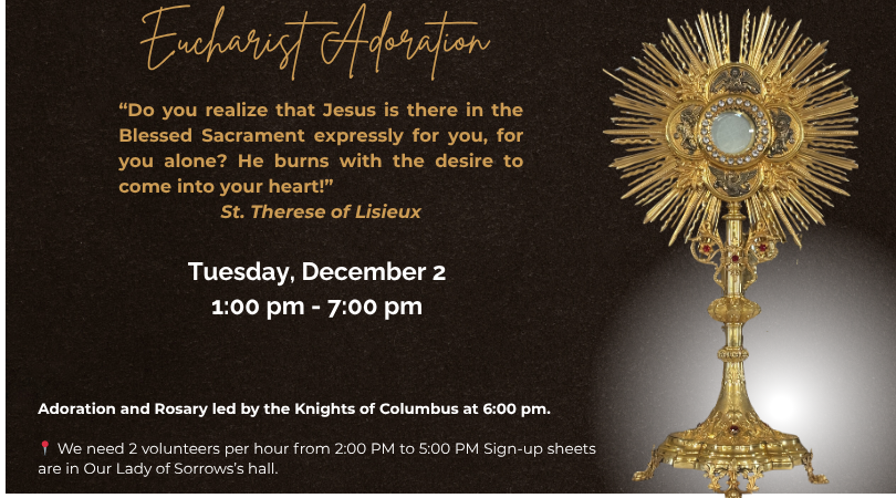 6:00 pm - 7:00 pm Adoration & Rosary (K of C)